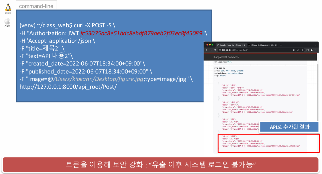 이렇게 하면, 토큰을 이용해 Post를 전송할 수 있게 되어 보안이 강화된다. (유출 이후 시스템 로그인 불가능)