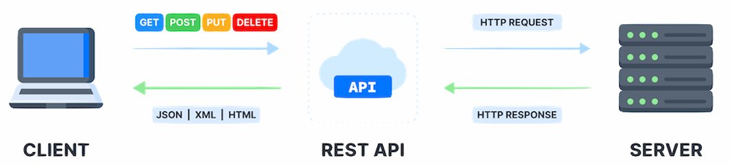- RESTful API: 서버가 데이터를 '화면' 대신 '정보(e.g., JSON)'로 제공하고, 클라이언트가 이를 받아 화면을 구성하는 방식