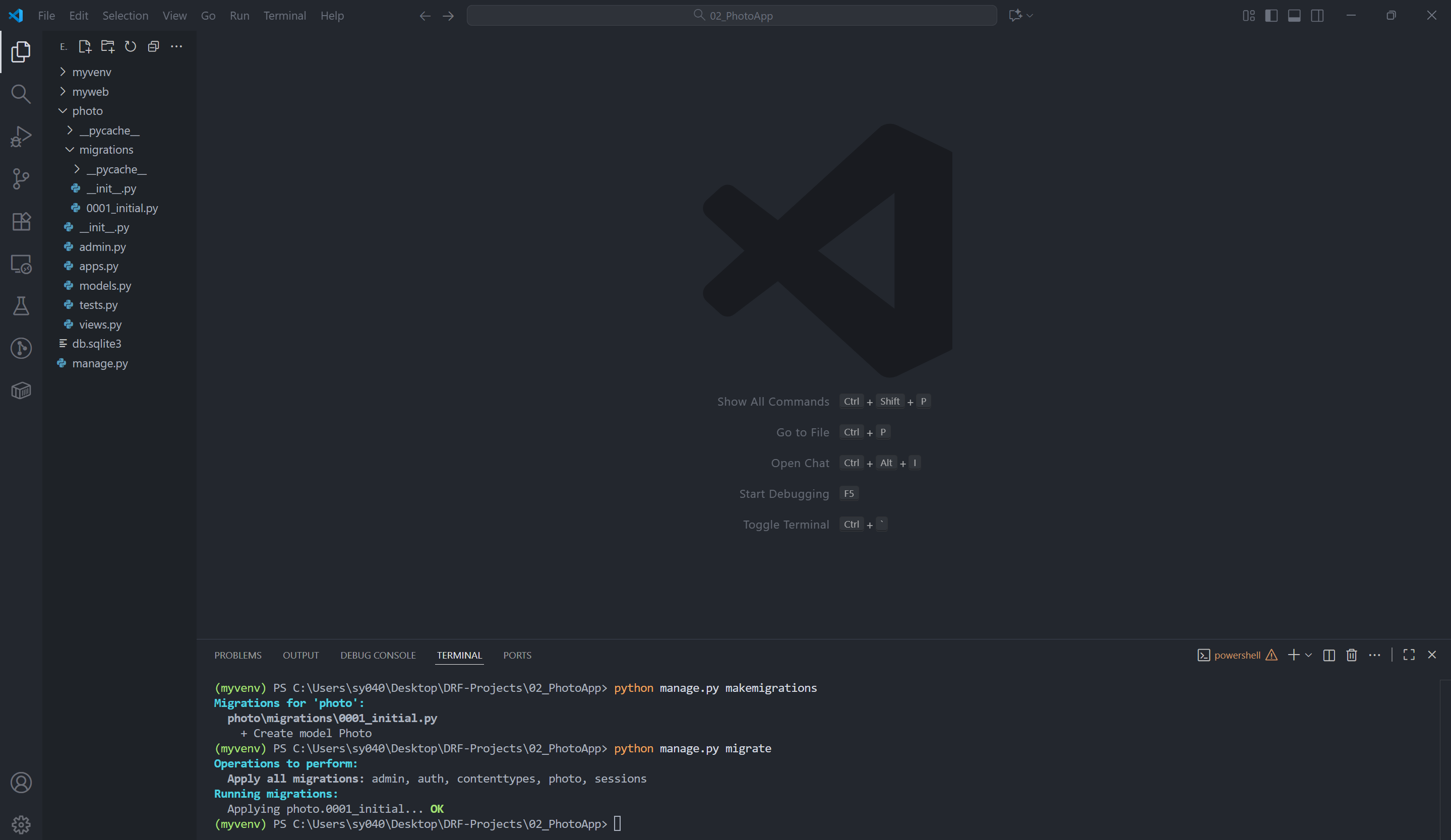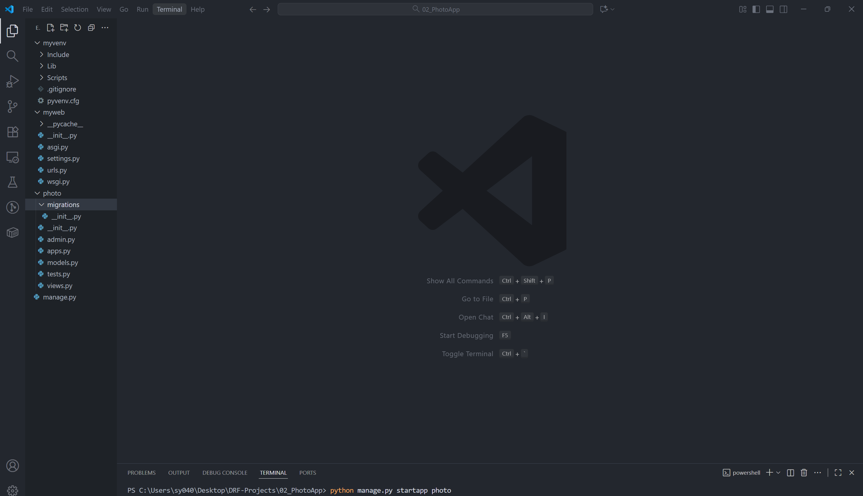 - myweb: startproject로 만들어진 폴더로, Django 프로젝트의 설정 및 기본 기능을 위한 파일들이 존재