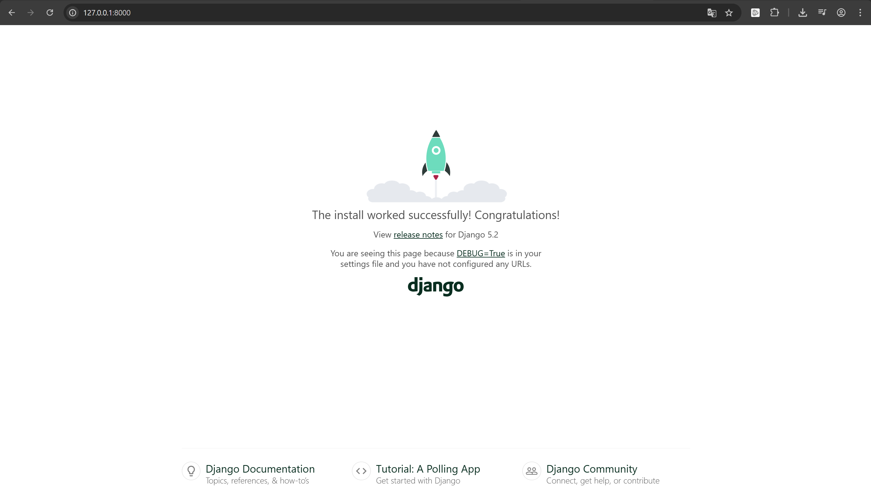 이때 8000은 Django가 사용하는 포트 번호이다.