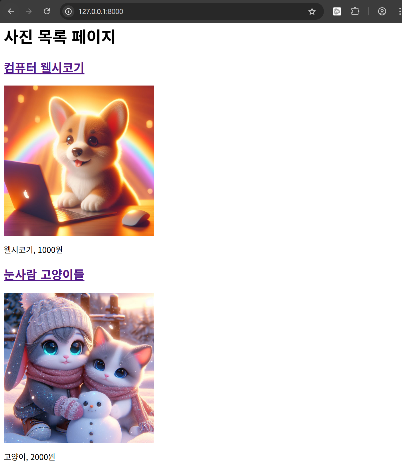 이제 다시 실행해 보면 관리자 페이지에서 등록한 사진들이 잘 나오는 것을 확인 할 수 있다.