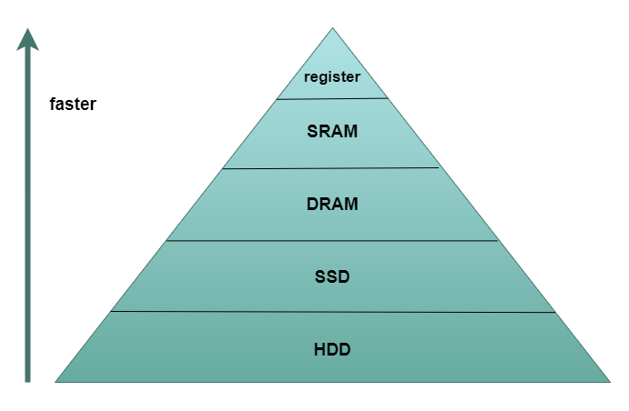 ex) 속도: 하드디스크 < RAM < 캐시