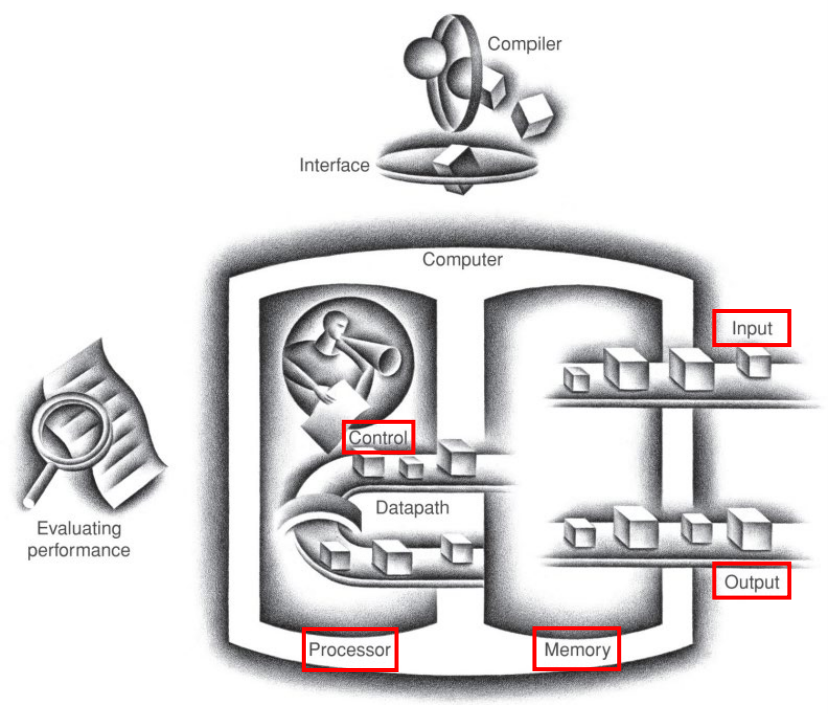 ex) 주기억장치, 보조기억장치, 입력장치, 출력장치, 중앙처리장치