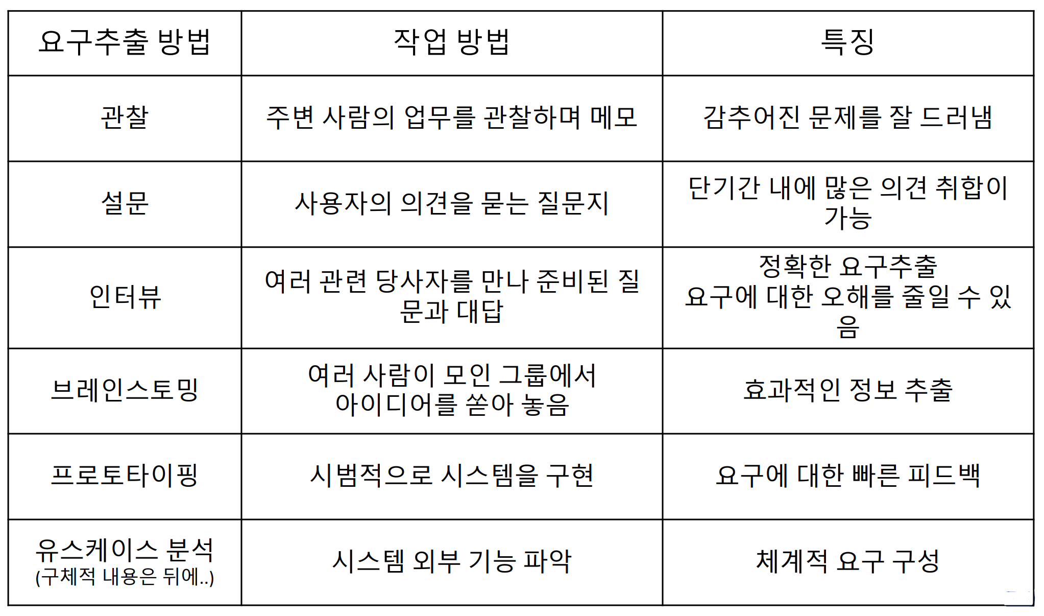 소프트웨어 개발에서는 견본(샘플)이 없는 경우가 대부분이므로, 사용자가 분석가에게 요구사항을 설명하기가 어렵다.