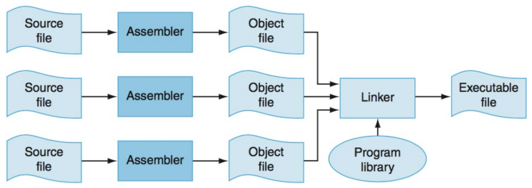 assembly language code -> machine code (0과 1로 이루어진 binary code)
