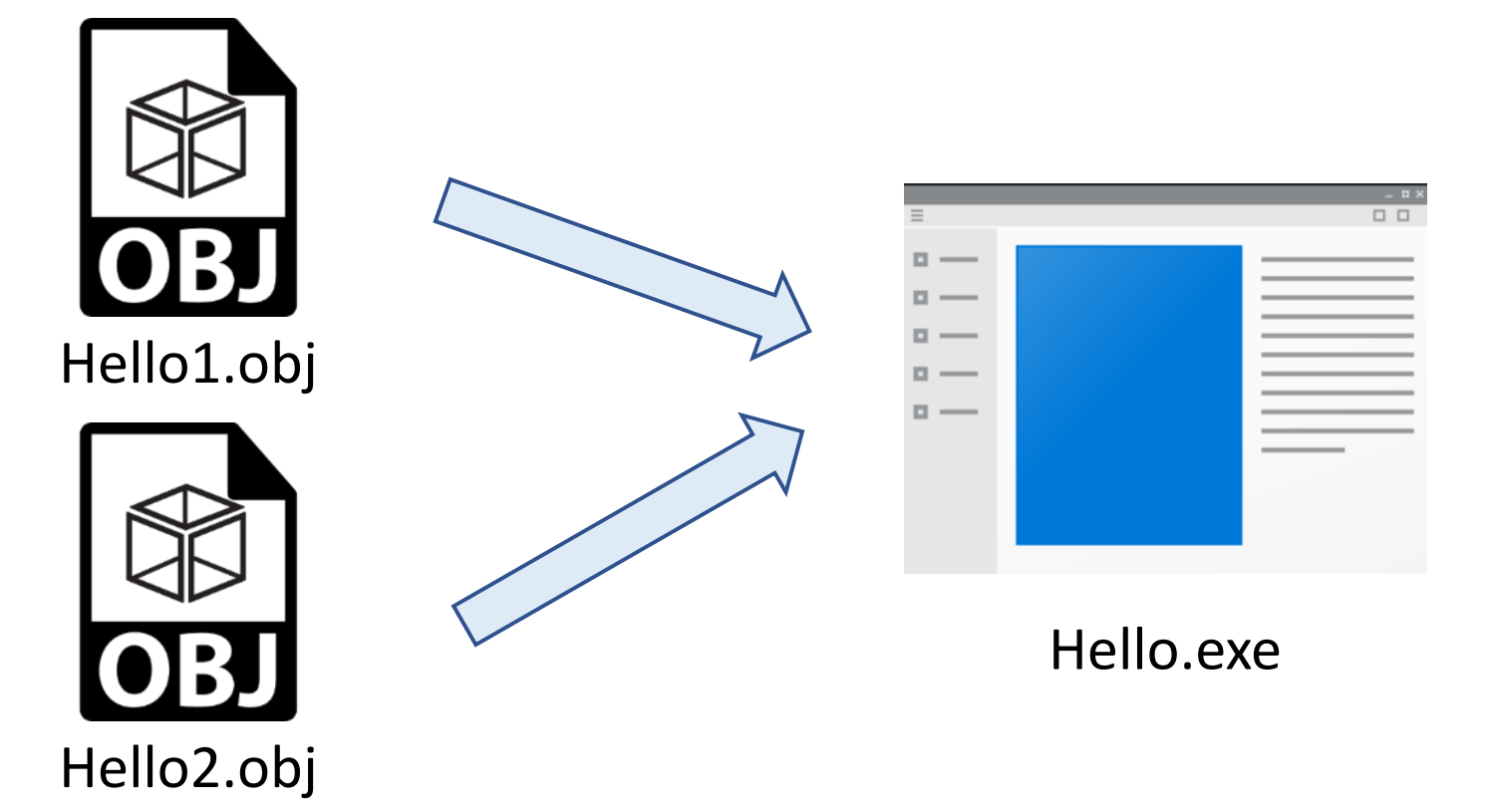 내가 만든 오브젝트 파일과 외부에 있는 오브젝트 파일(라이브러리 파일, DLL)을 연결하여 최종적으로 exe 파일을 만들 수 있다.