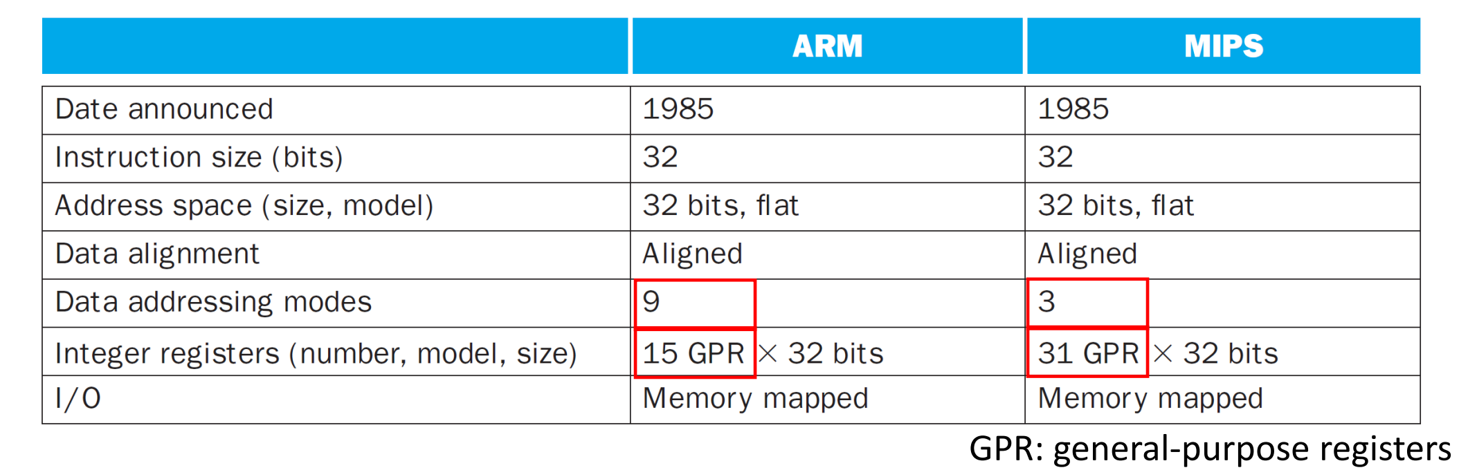 MIPS - 0 레지스터 제외하고 31개, ARM - 0 레지스터 제외하고 16개