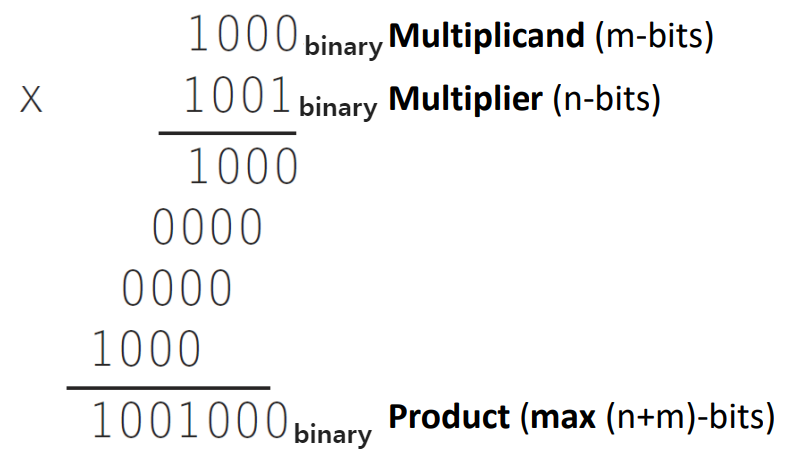 - When bit in multiplier: place a copy of the multiplicand in the proper place