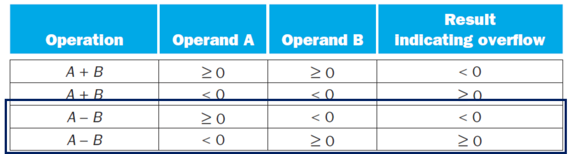 빼기의 경우에는 두 수의 부호가 다를 때 Overflow가 발생할 수 있다. (부호 반대일 )