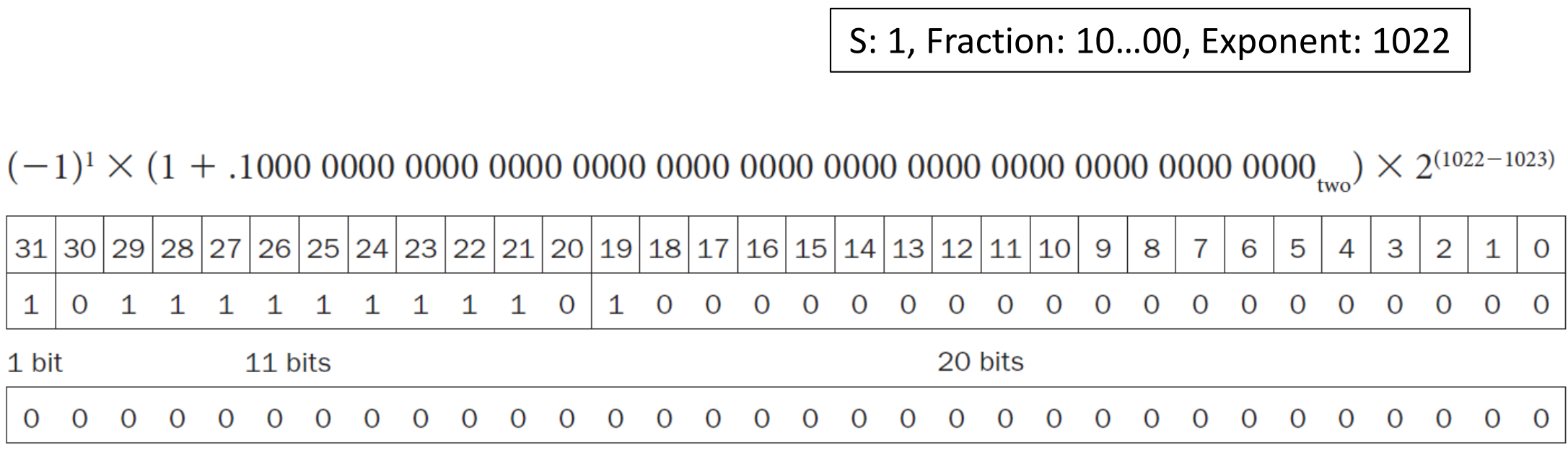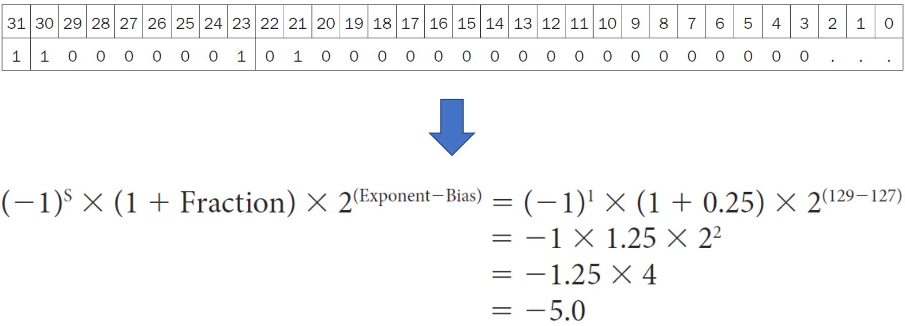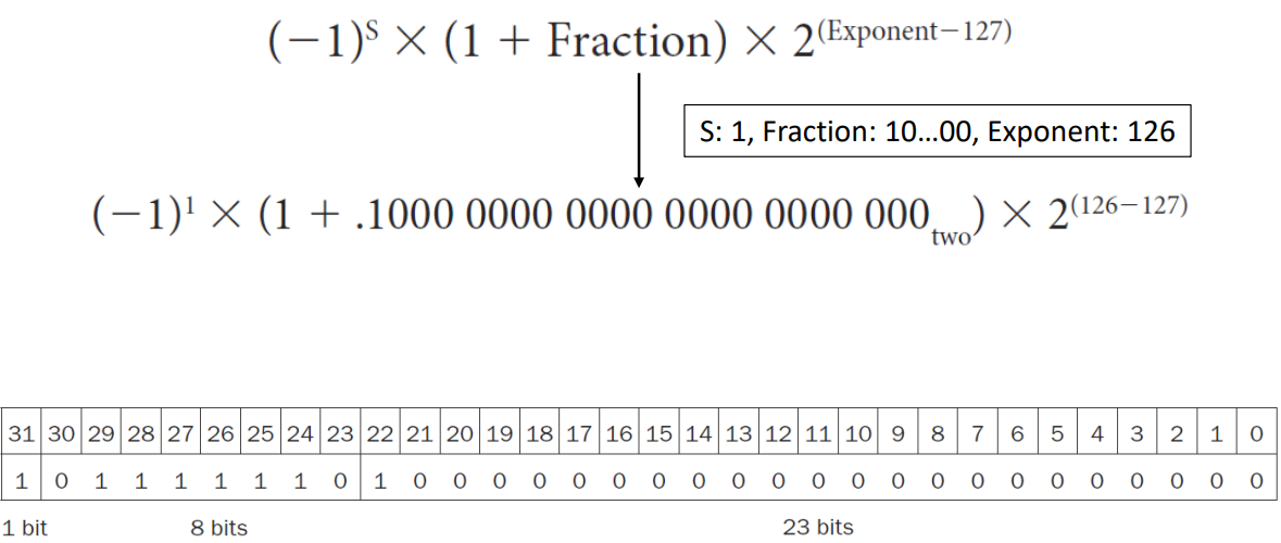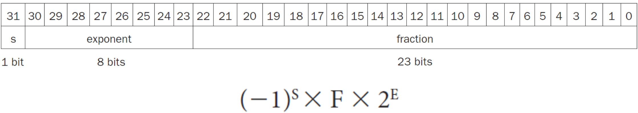 - Single precision: 실제론 24 bits 표현 가능 (1 + 23 bits)