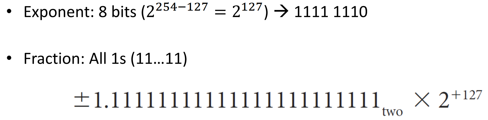 ▶ Exponent 11...11 and Fraction 0 -> Infinite / Exponent 11...11 and Fraction Nonzero -> NaN(Not a number)