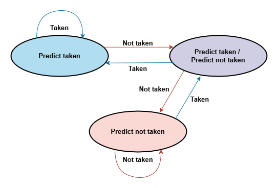 - Save previous result: branch taken (1) branch not taken (0)