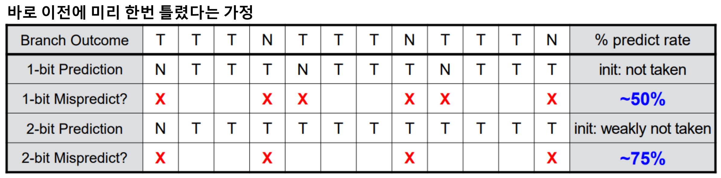 ※ 1-bit prediction의 정답 예측 비율이 50% 정도라면 사실상 그냥 찍는 것과 다를 바 없다.
