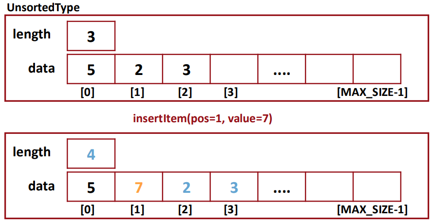 - insertItem(): depending on "length" and "pos"