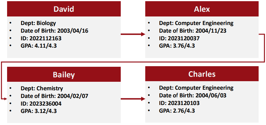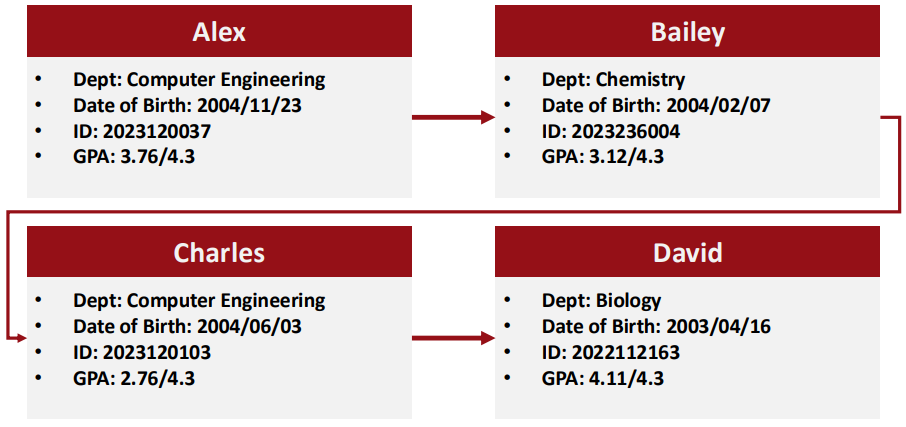 - Each element except the first has a unique predecessor(전임자), and each element except the last has a unique successor(후임자).