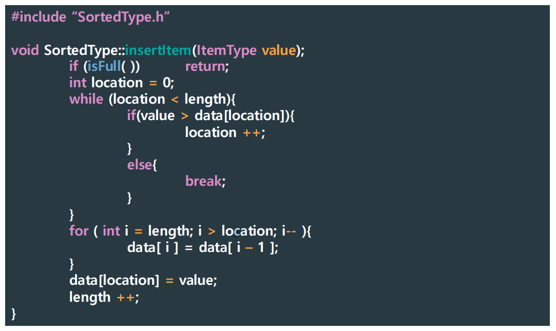insetItem()은 포지션을 찍어서 넣어준다기 보단, 특정한 값을 정해진 order에 맞게 넣어주는 식으로 바꿔주어야 한다.