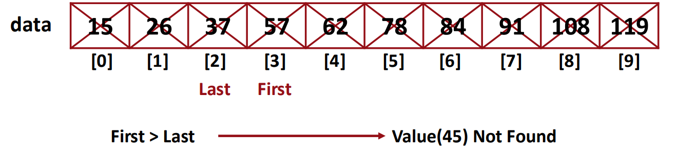 정렬된 리스트에서 탐색할 때, 찾는 값보다 큰 값이 나오면 이후 요소들도 더 클 것이므로,