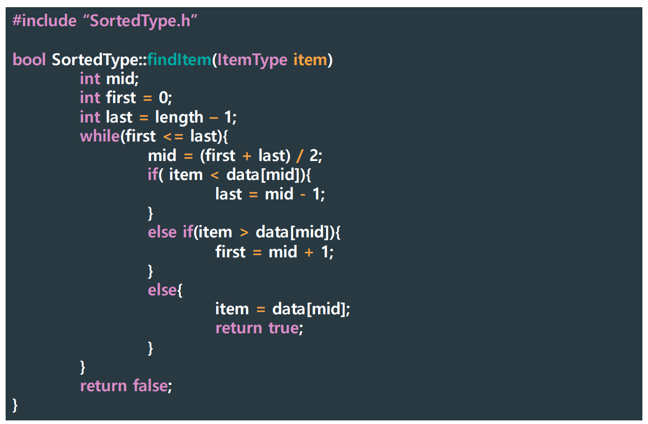 ※ Linear Search: 직선의 형태로 앞에서부터 하나씩 비교하는 방식