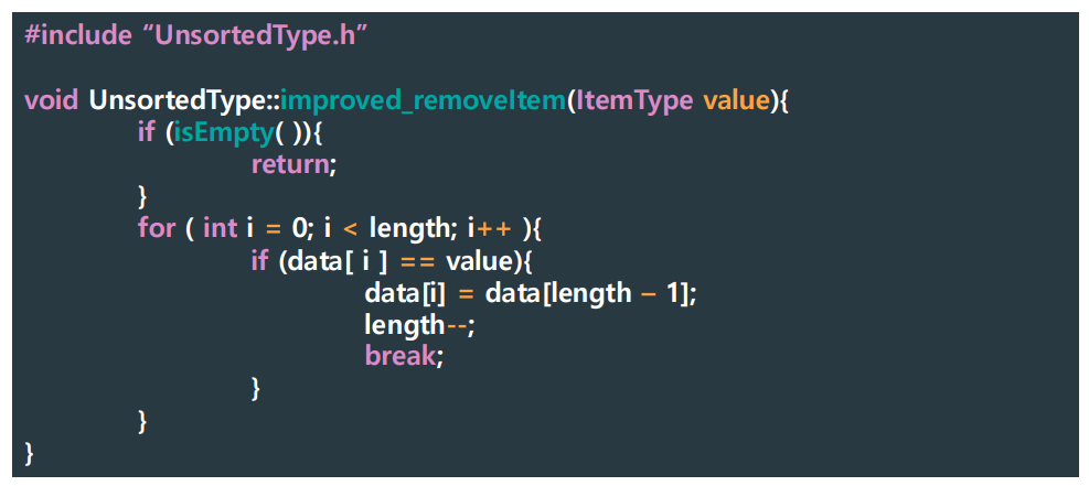 물론, 실질적으론 improved_removeItem()이 removeItem()보다 computation이 더 적다.
