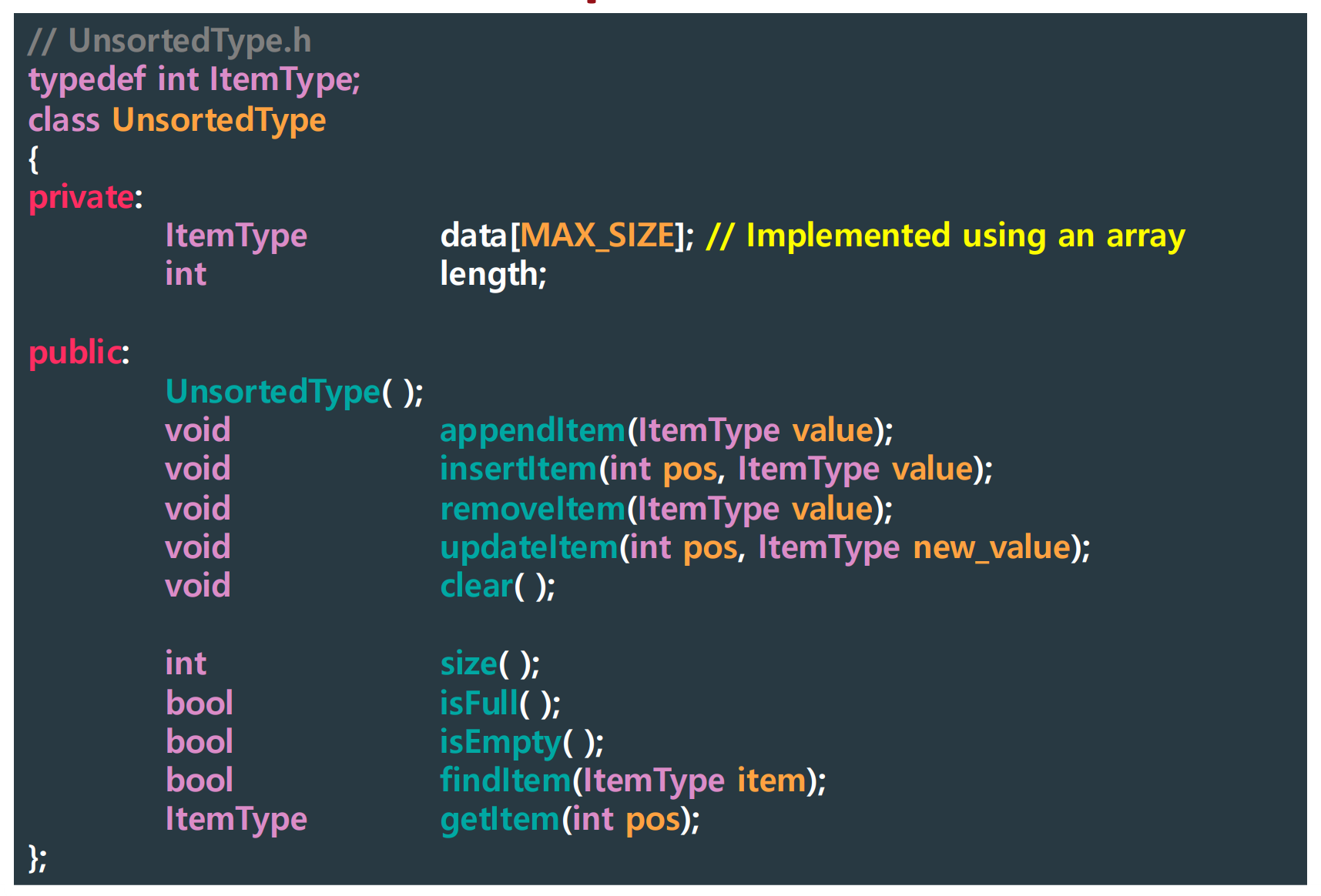 appendItem()과 updateItem()은 Sorted List에선 활용성이 떨어져 굳이 사용하지 않는다.