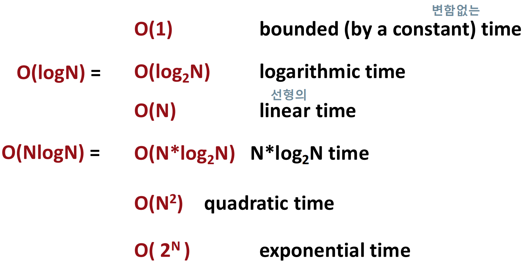 ※ 일반적인 수학에선 log 밑이 생략되면 10이 생략된 상용로그로 보지만, 컴퓨터 쪽에선 2가 생략된 걸로 본다.
