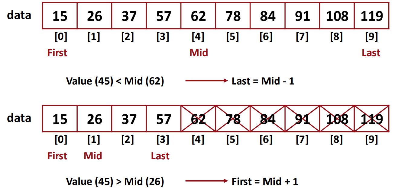 한 번 비교할 때마다 한 개씩만 버리는 Linear Search와는 달리,