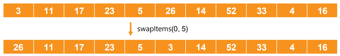 ▶ swapItems(int firstItem, int SecondItem) swaps data[firstItem] and data[secondItem]