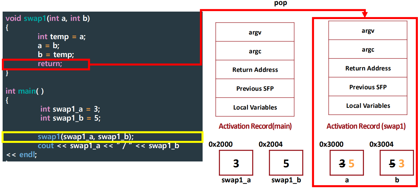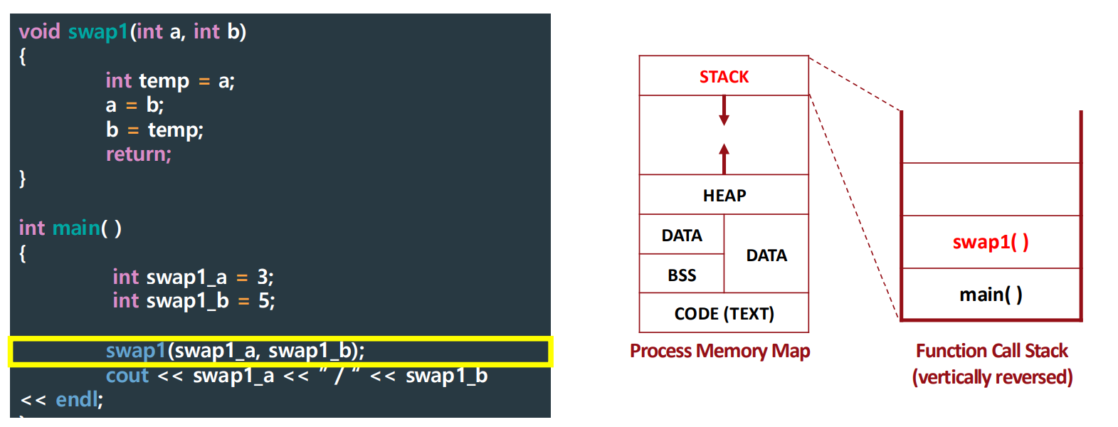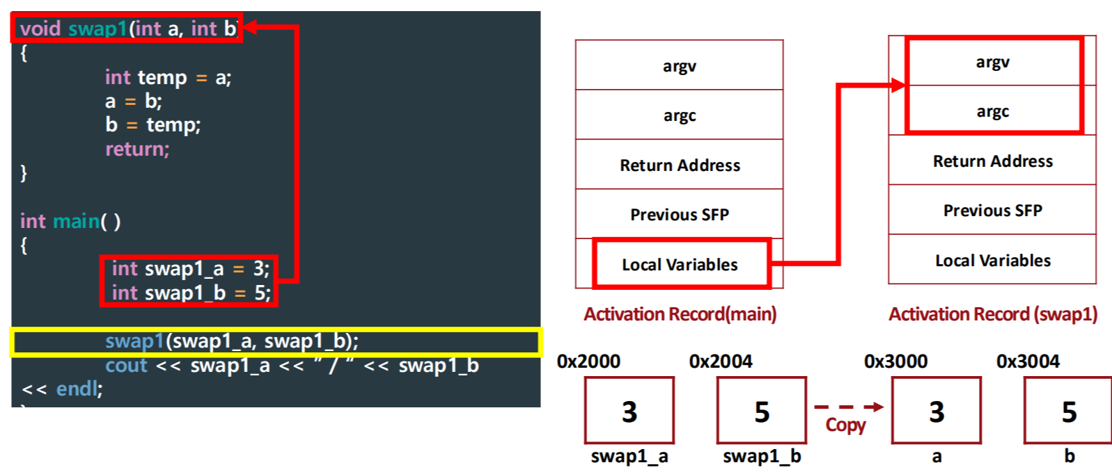 swap1_a and swap1_b are passed to swap1() as arguments.