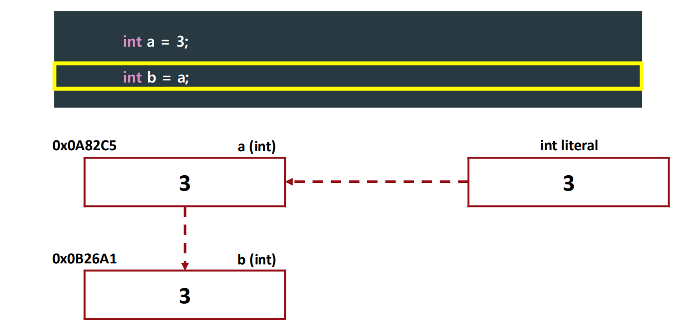 - From now on, we think them "copy 3 into a" and "copy a into b".