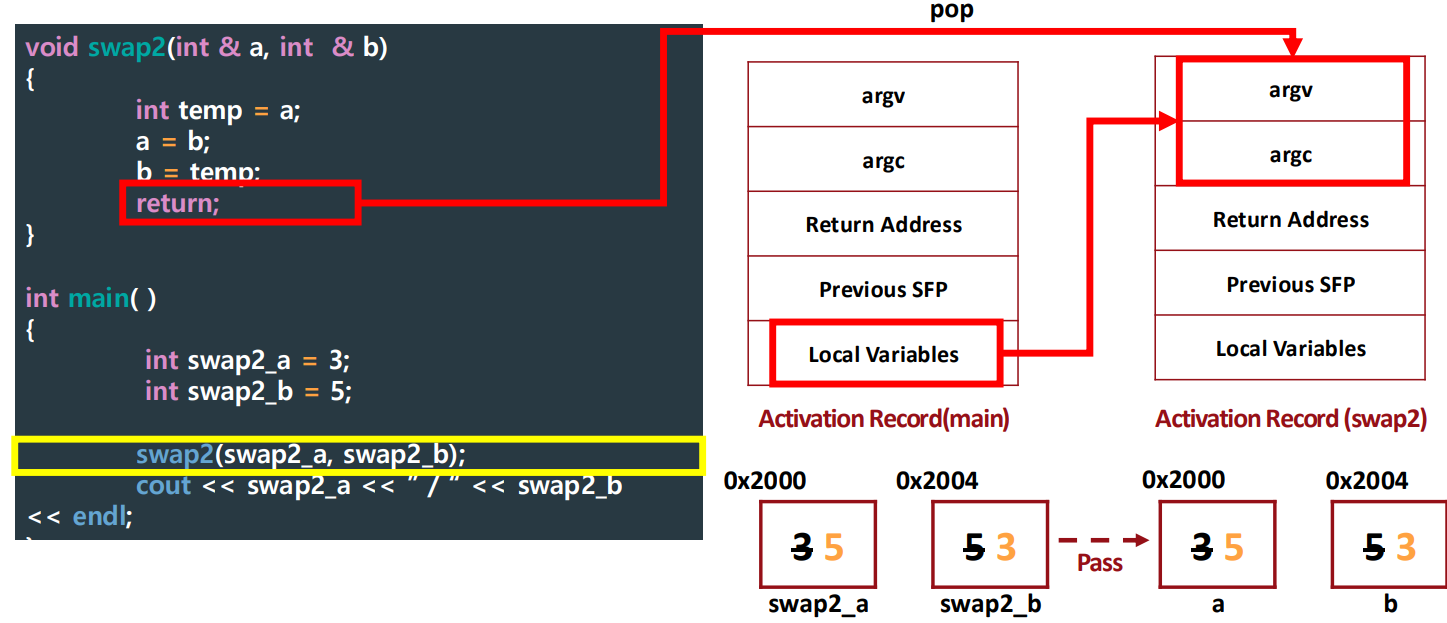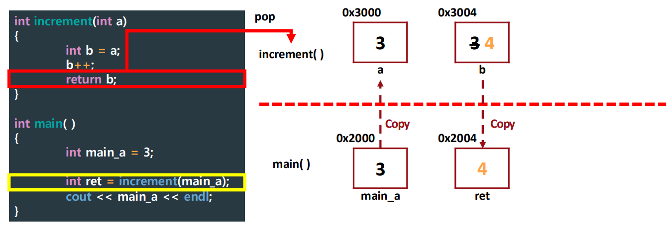 - 'Return by Value' explicitly returns the specific type of result (int 'b').
