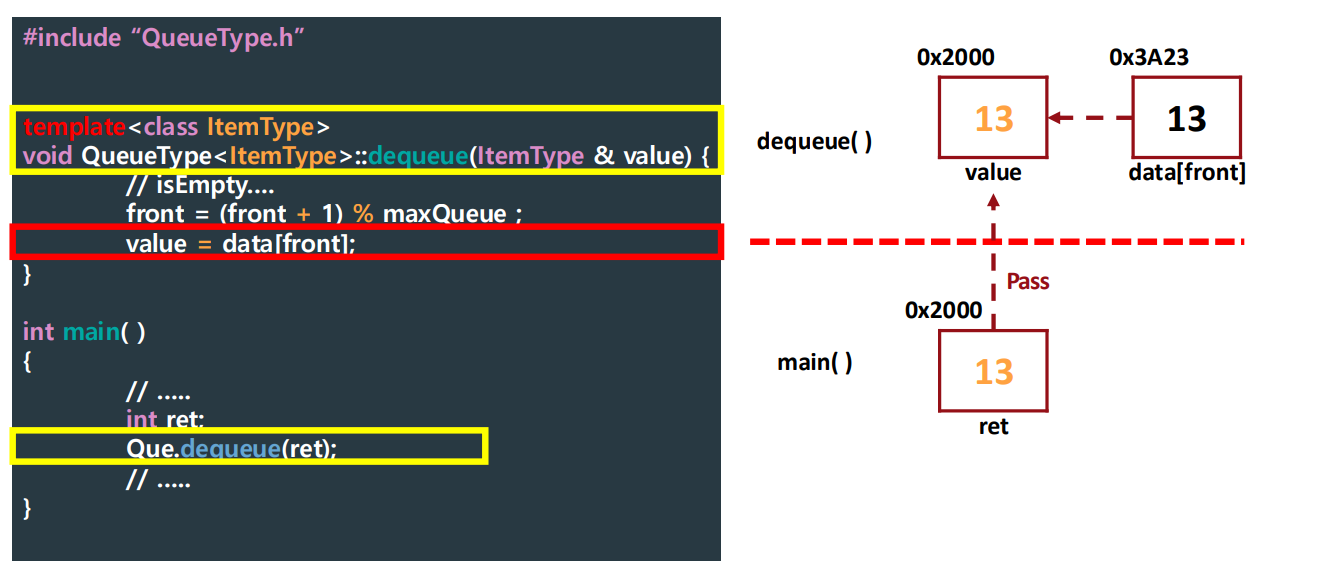 The value of 'data[front]' is copied into 'value', thus 'ret'