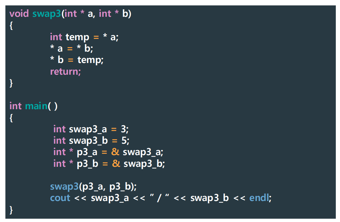 ▶ Swap Example (3) - call by pointer(address)
