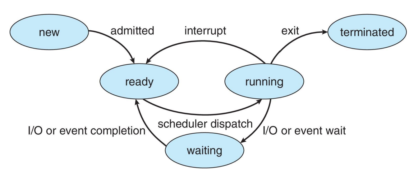 : state는 OS가 관리하며, 이를 통해 프로세스가 번갈아 가며 CPU 사용 (time sharing)