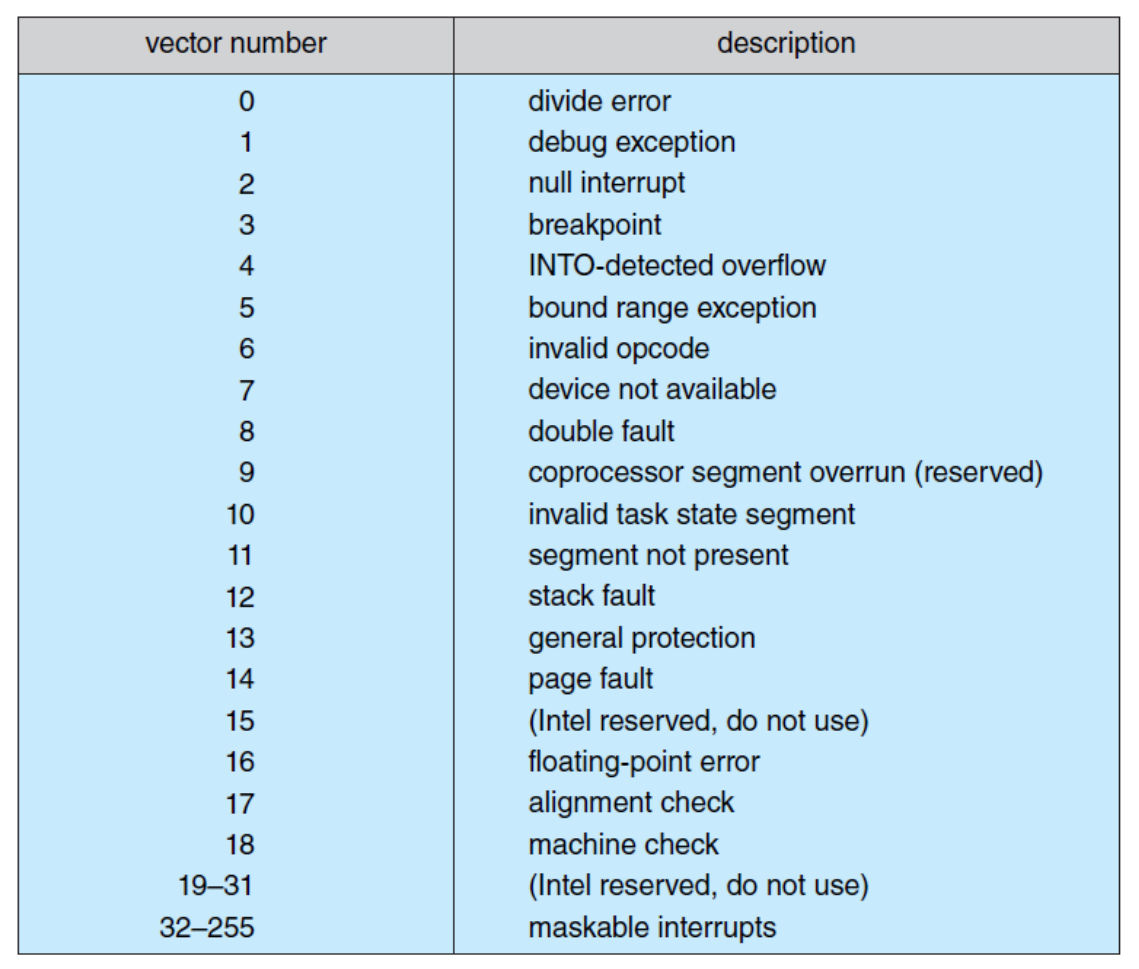 interrupt 종류에 따라 OS는 해당하는 interrupt handler를 불러 주어야 한다.