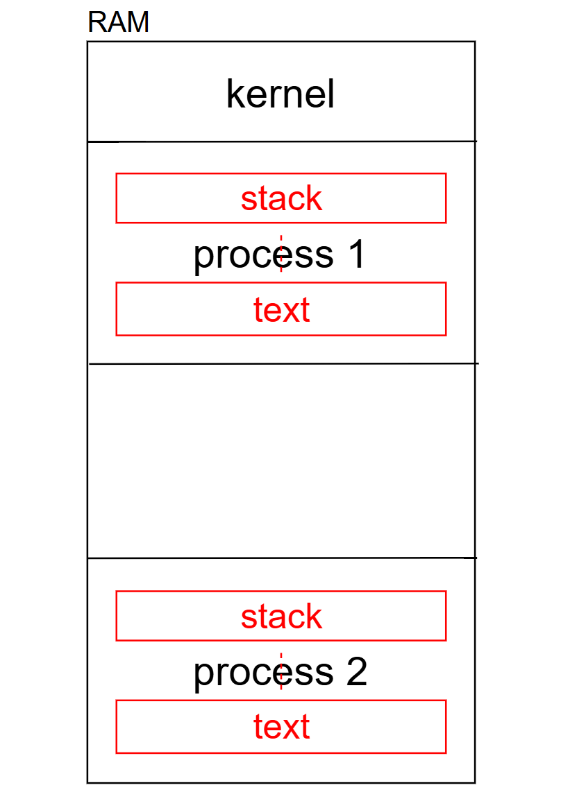Process address space는 process마다 따로 존재한다.