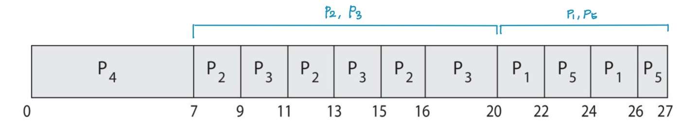 - time quantum 동안 finish X -> 우선순위 낮아짐