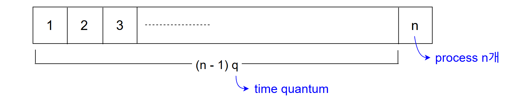 : FCFS + time slice(quantum, 양자) (preemptive)