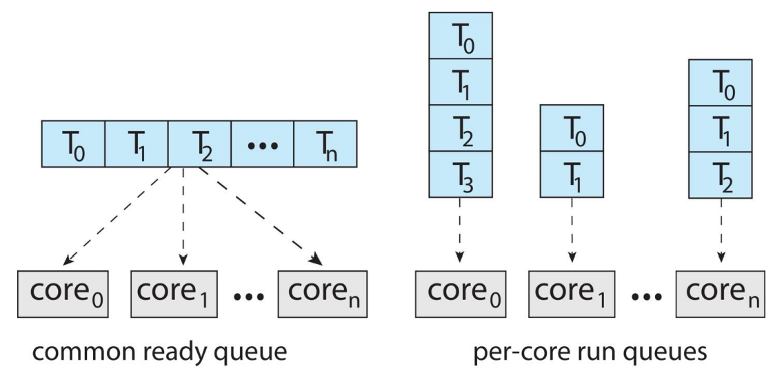 - Push migration: OS schedular가 각 프로세서의 load를 주기적으로 확인하고 overloaded CPU에서 다른 CPU로 task push