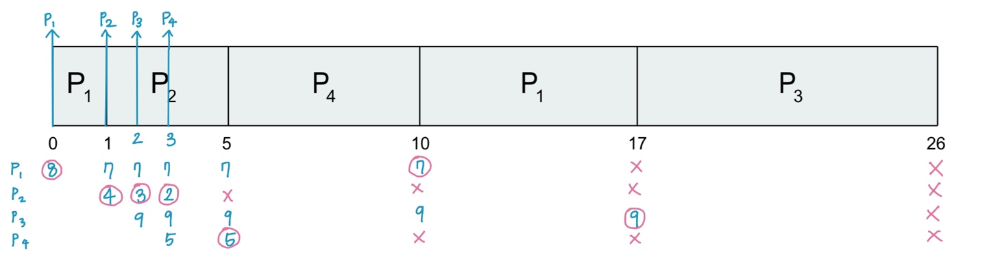 + request(CPU core 할당) 처음으로 response 하는 시간 줄어듦 (SJF보다 좋음)
