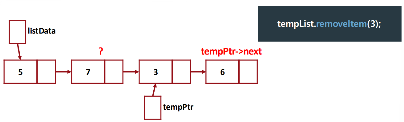 혹은 tempPtr을 따라 오는 pointer를 하나 더 만들어 tempPtr의 바로 직전의 node를 가리키도록 하는 방식을 사용해야 한다.