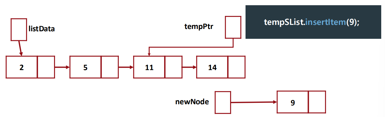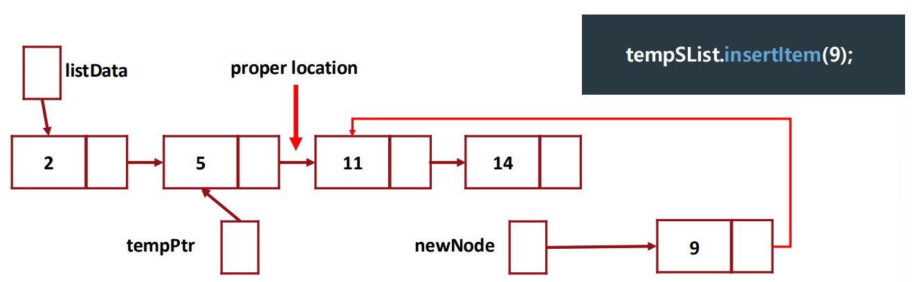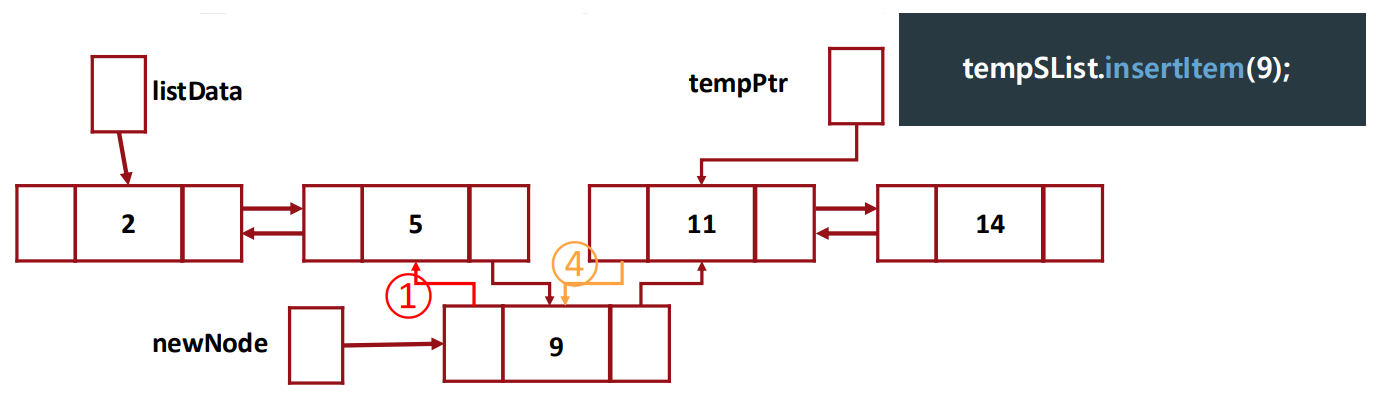 - We put the newNode in front of the node pointed by 'tempPtr'.