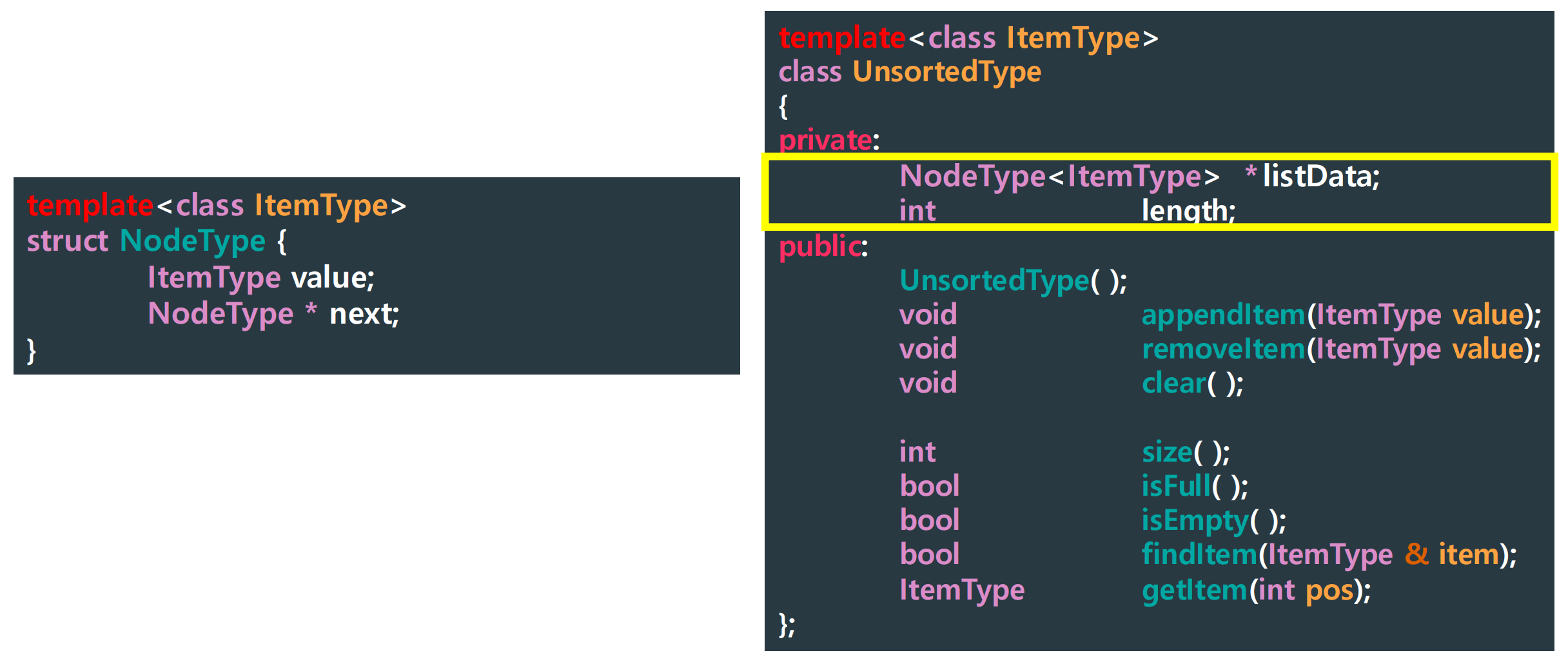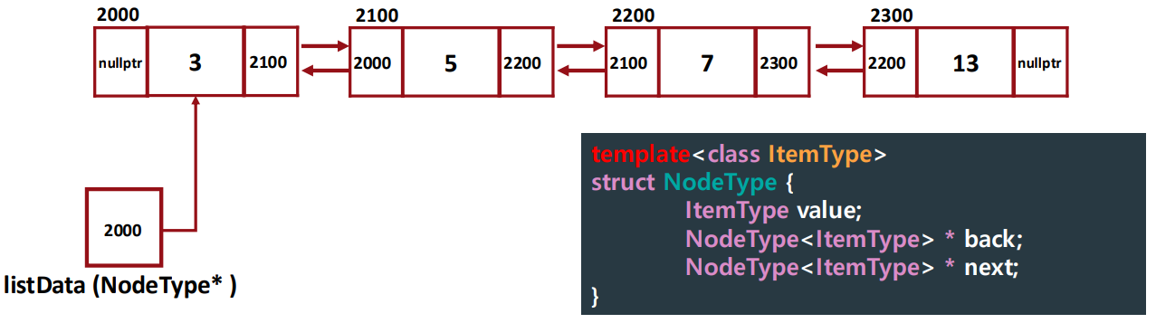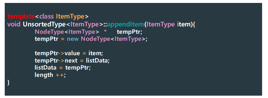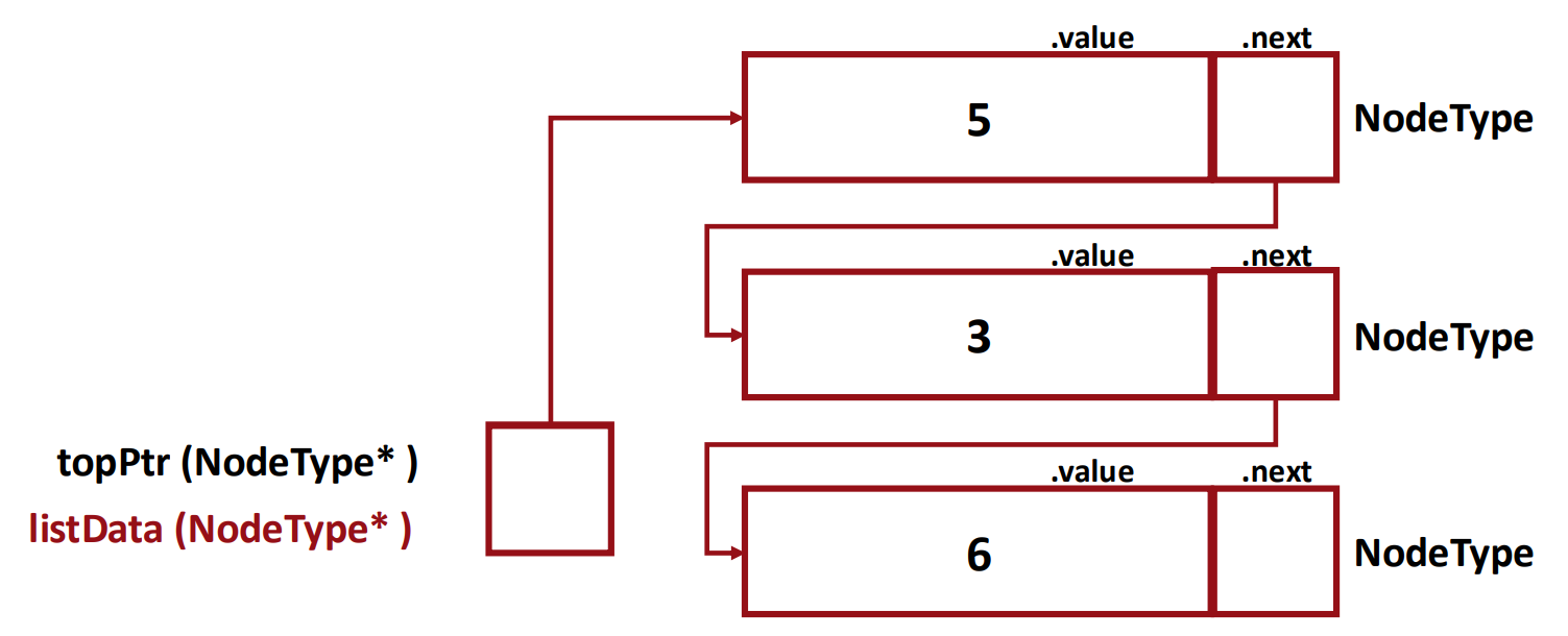- stack의 구조를 그대로 가져오되, 이름만 topPtr -> listData 변경