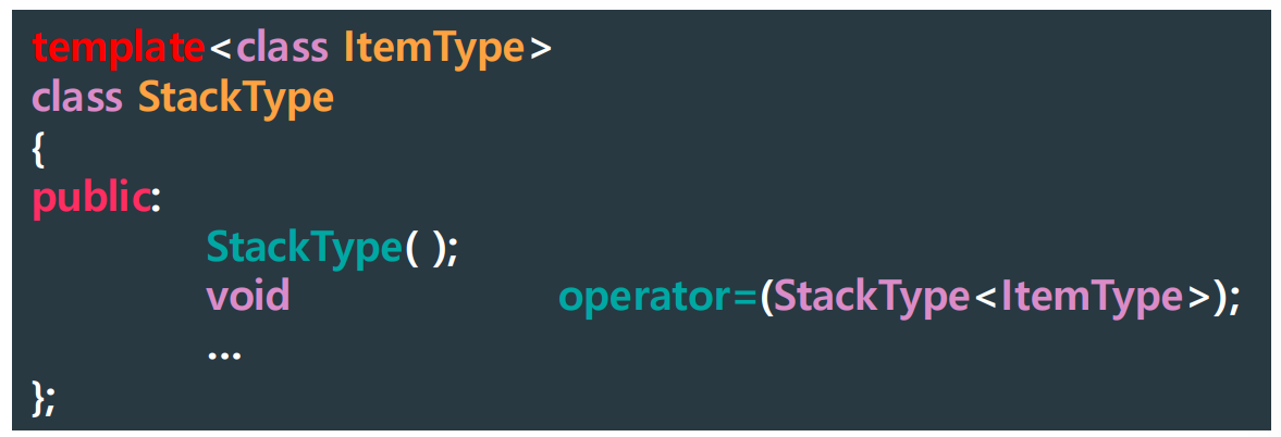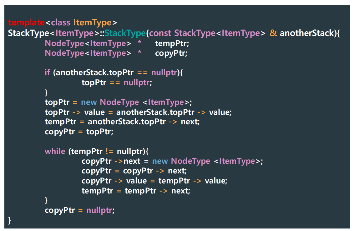 - StackType<int> newStack = tempStack; -> copy constructor 자동 적용 O