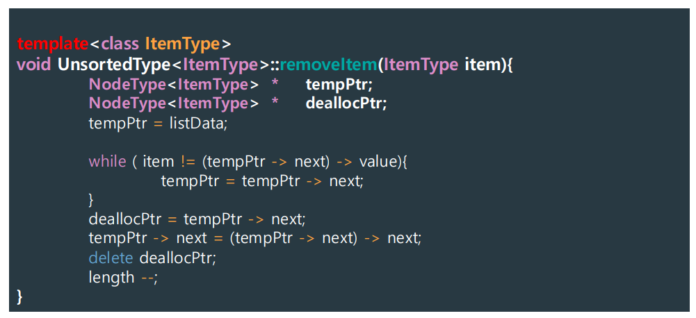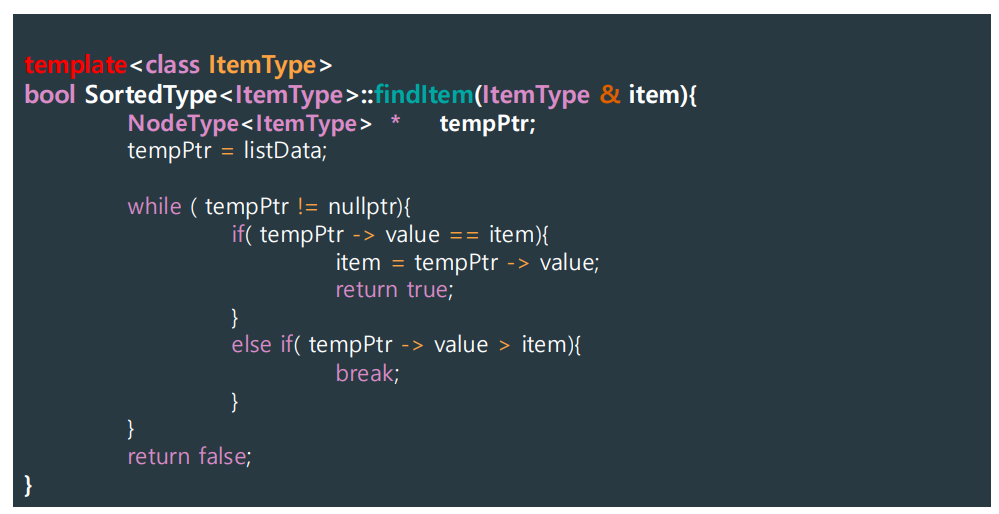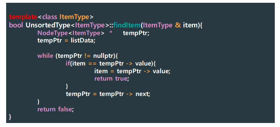 - Our search algorithm identifies (tempPtr -> value) > item.