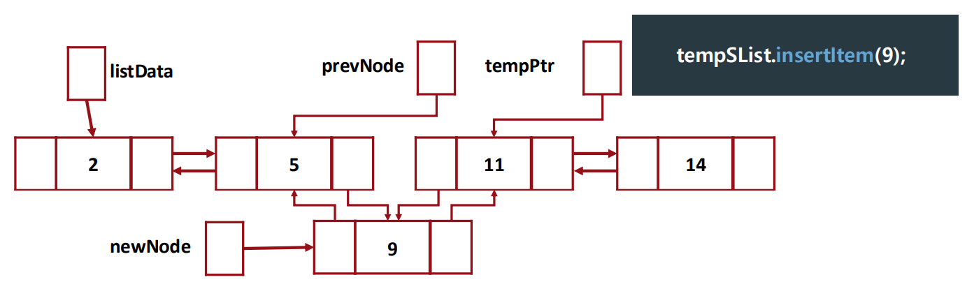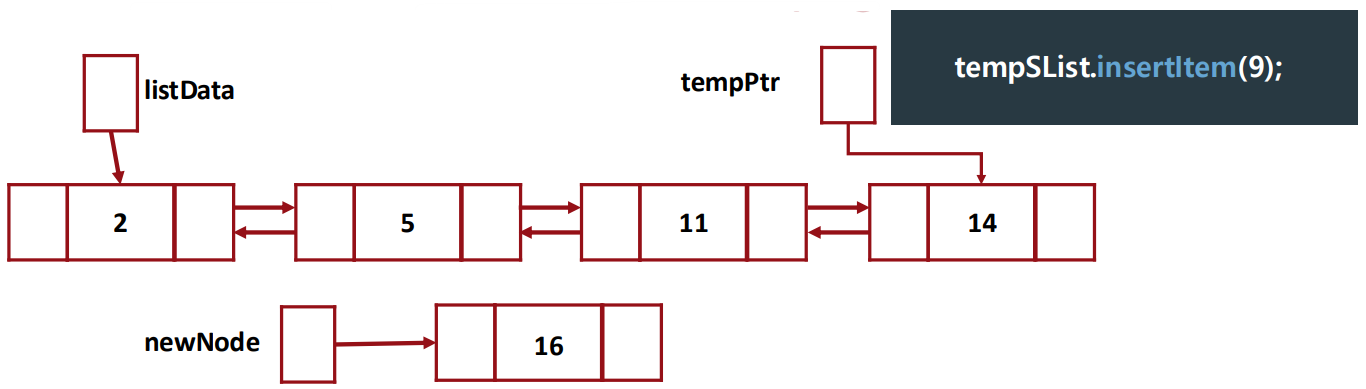 - (9)는 newNode로, (11)은 tempPtr로 직접 접근하지만, (5)는 tempPtr -> back로 우회적으로 접근하기 때문