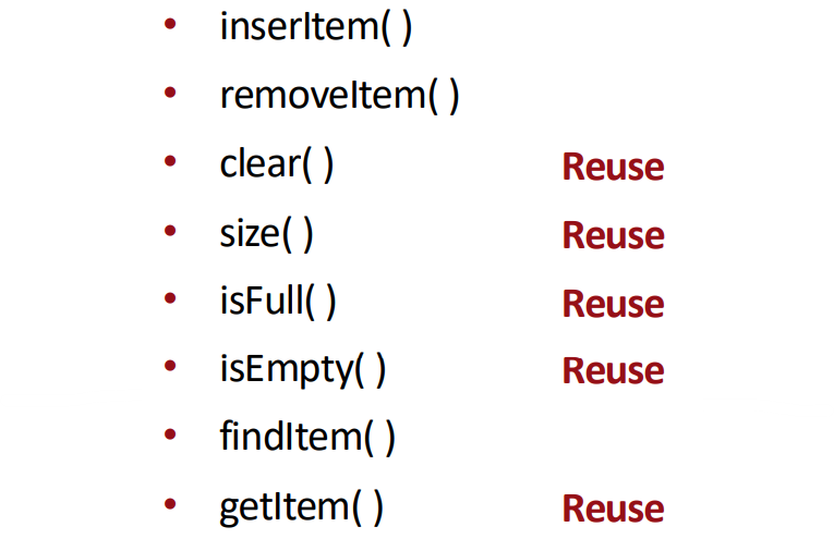 ▶ We can reuse most operations implemented for Unsorted List.
