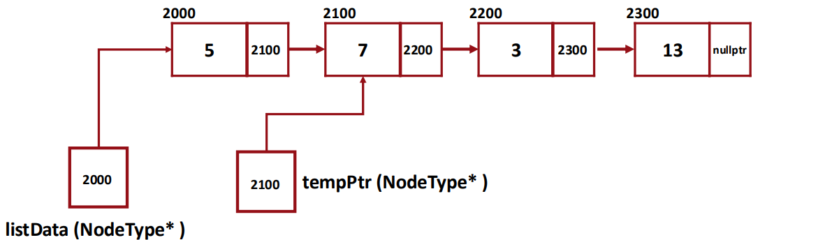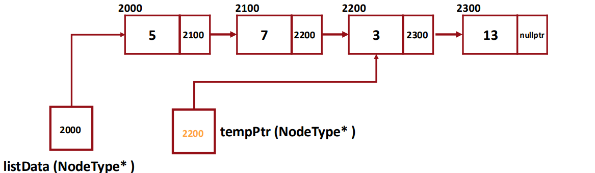 - When searching ends, tempPtr will point to the last node.
