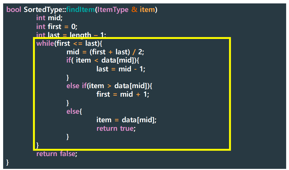 - If mid == item, then return true;