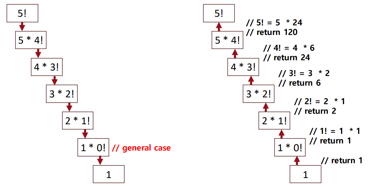 - Recursive call: 재귀, 자기 자신을 호출하는 것