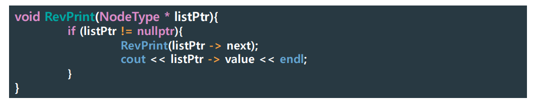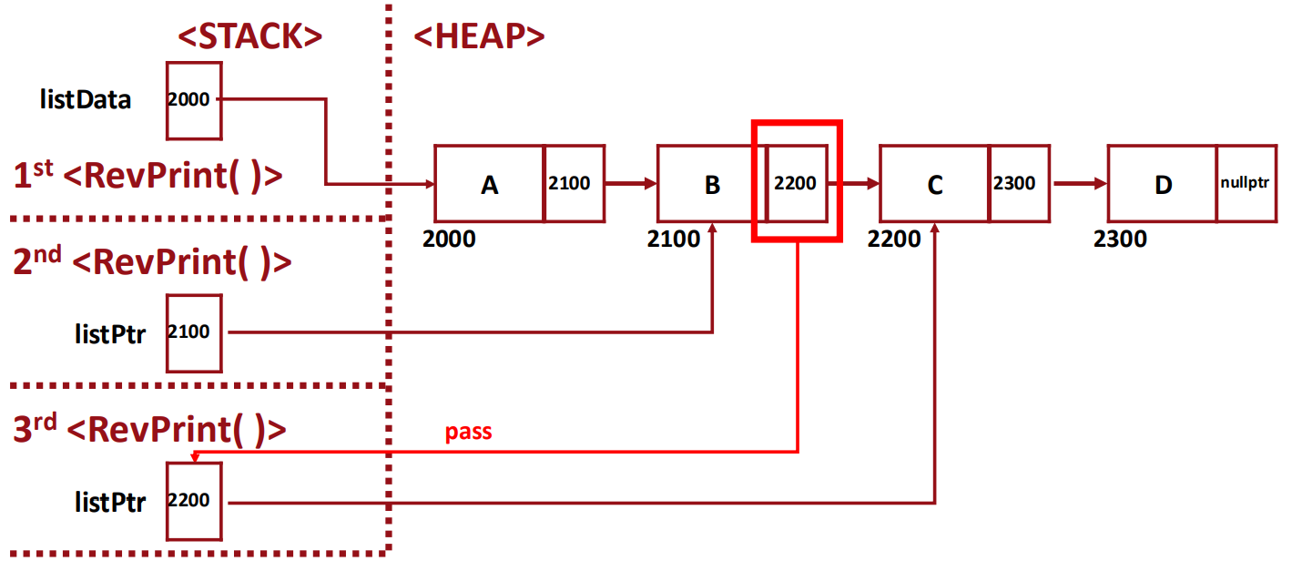 - 가정: 세 번째 recursion 내부에서 listPtr = listPtr->next